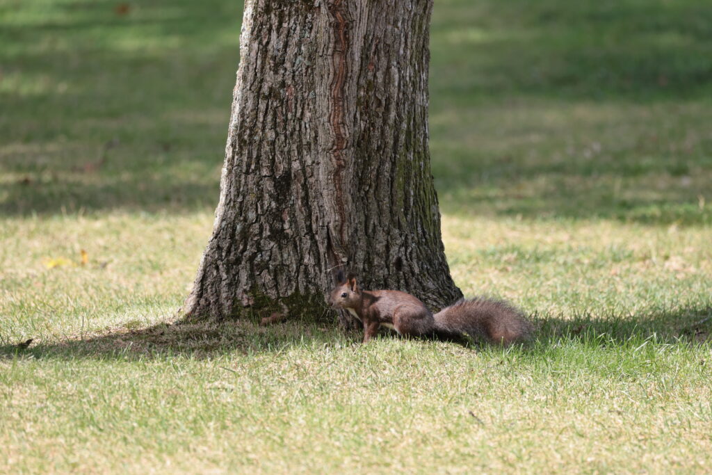 ゴミ箱にリスが居るところに遭遇、頑張って撮影しました