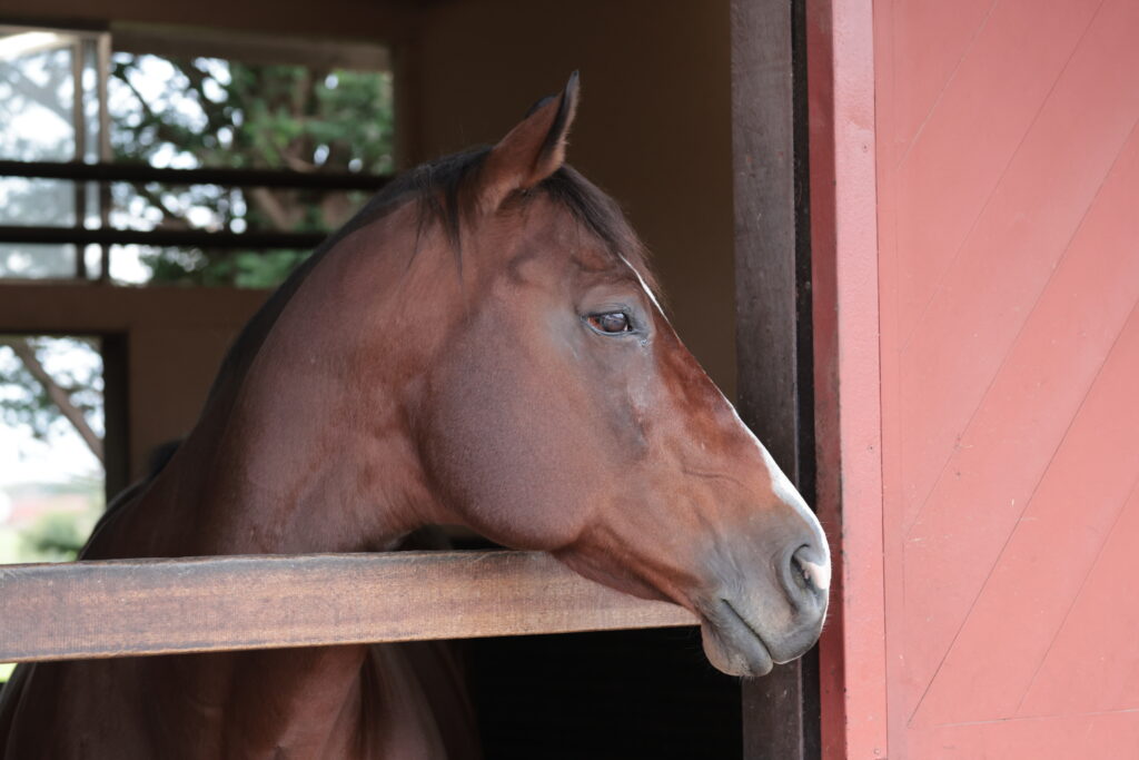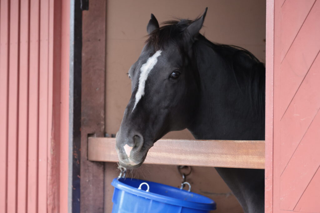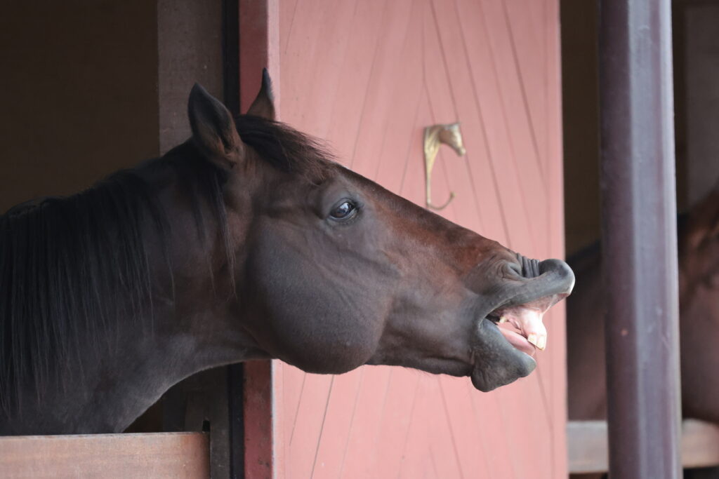 厩舎に戻ったお馬さんたちはなかなか顔を出してくれないので
