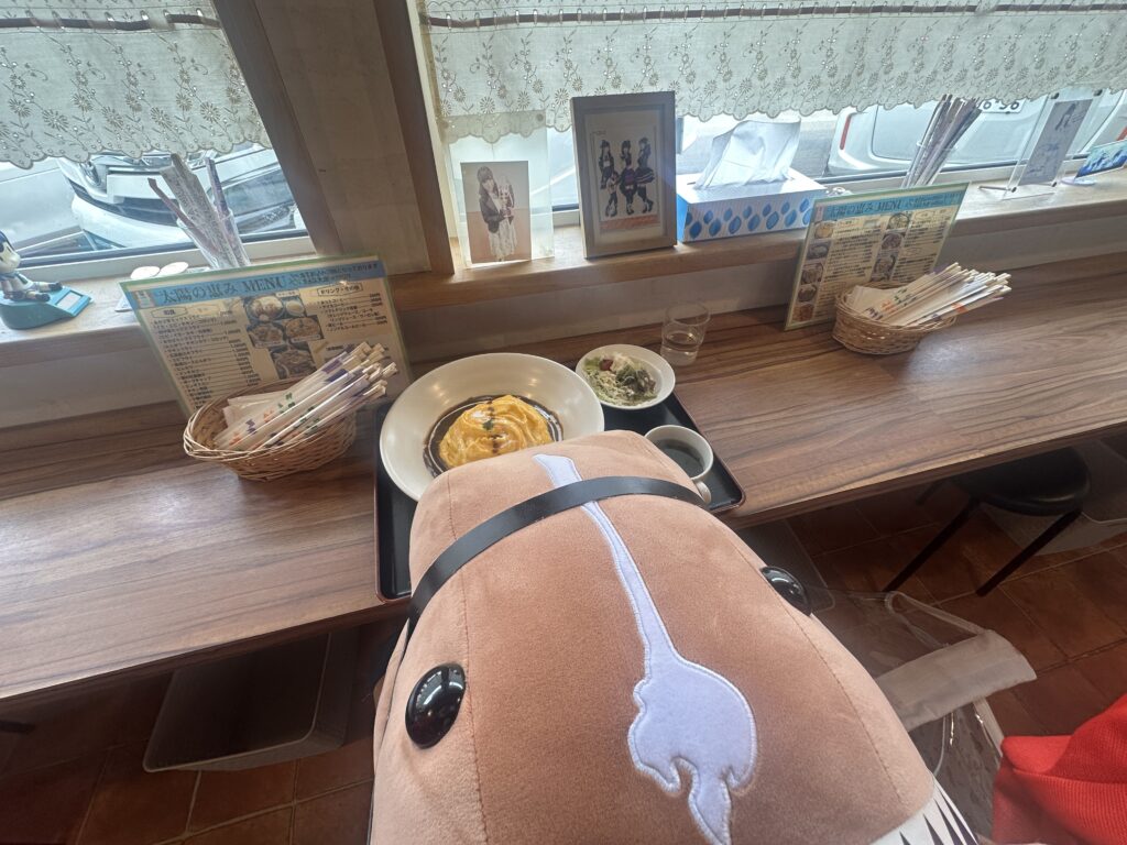 翌日行きつけのカフェに行くので静内の「ぽっぽ」でウマ娘の缶バッジを入手するために